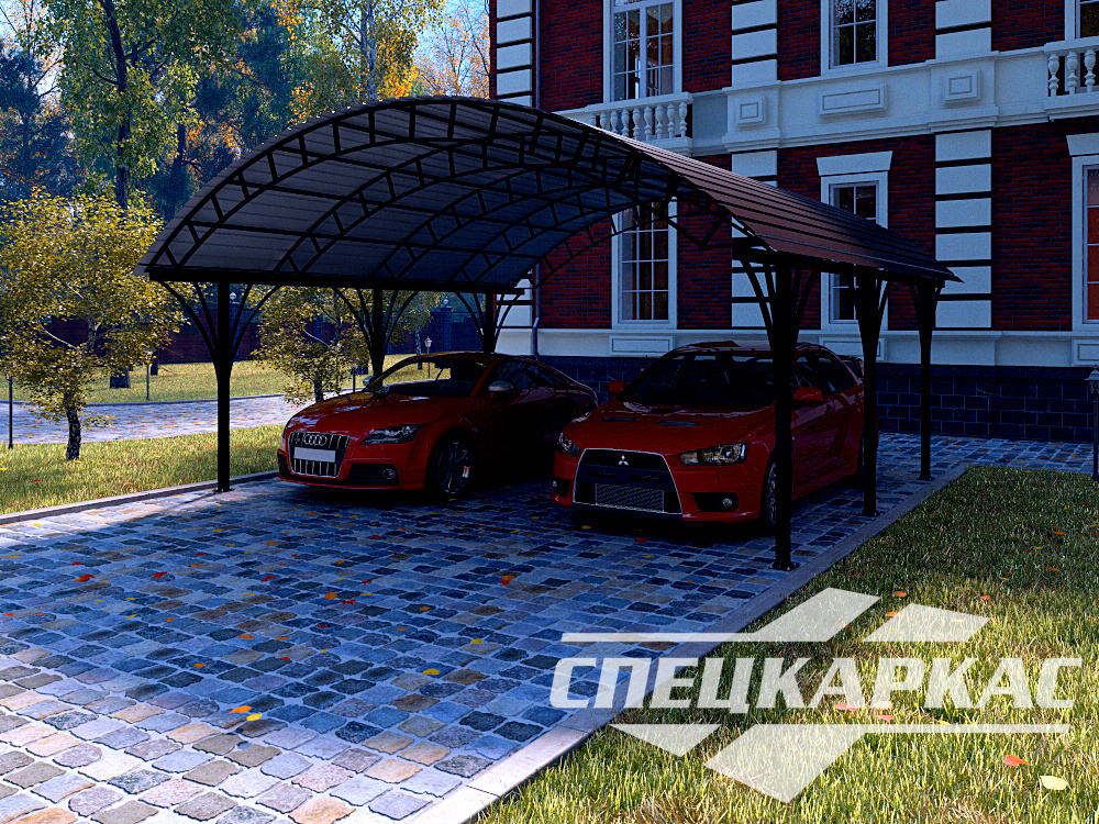 Компания «Спецкаркас» предлагает козырьки, беседки, навесы из поликарбоната любого типа и формата: одно- и двухскатные, прямые и наклонные, арочные и даже куполообразные.