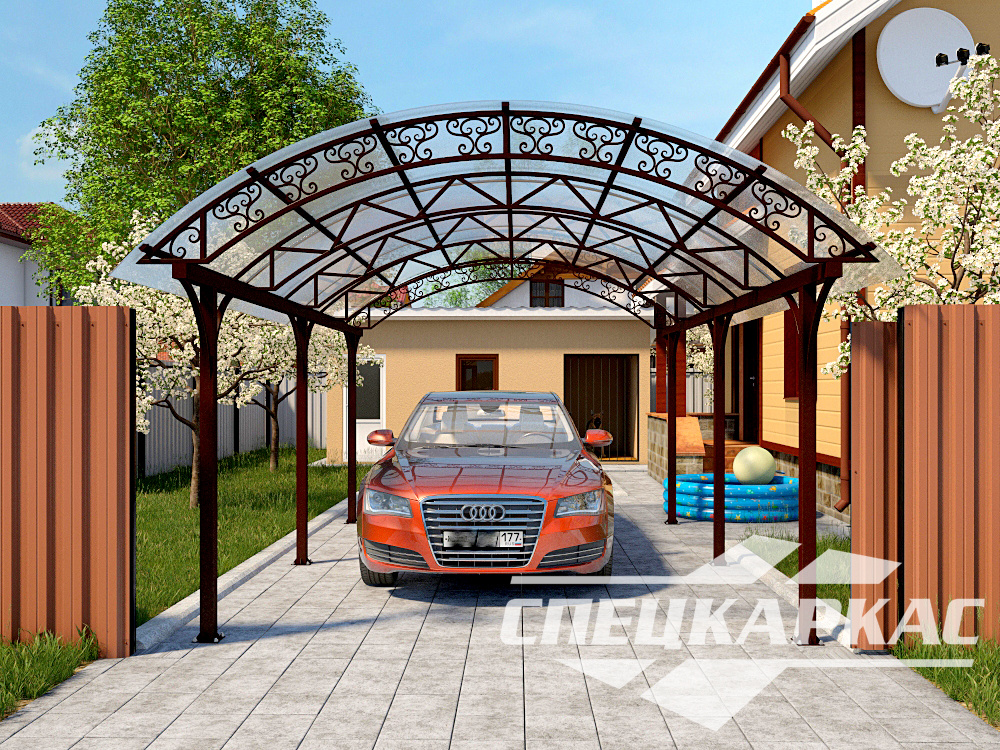 Навес для автомобиля арочный на дачу
