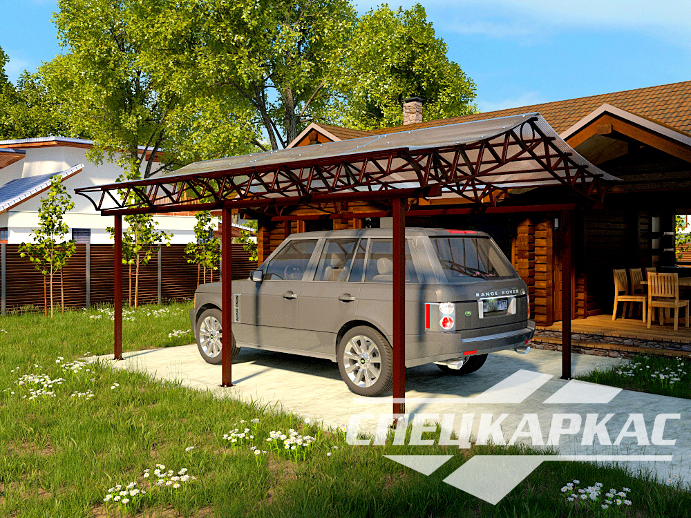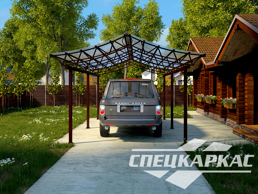 Компания «Спецкаркас» предлагает козырьки, беседки, навесы из поликарбоната любого типа и формата: одно- и двухскатные, прямые и наклонные, арочные и даже куполообразные.