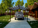 • Навес может комплектоваться следующими вариантами кровли: сотовый поликарбонат, монолитный поликарбонат,  профнастил, металлочерепица, мягкая кровля