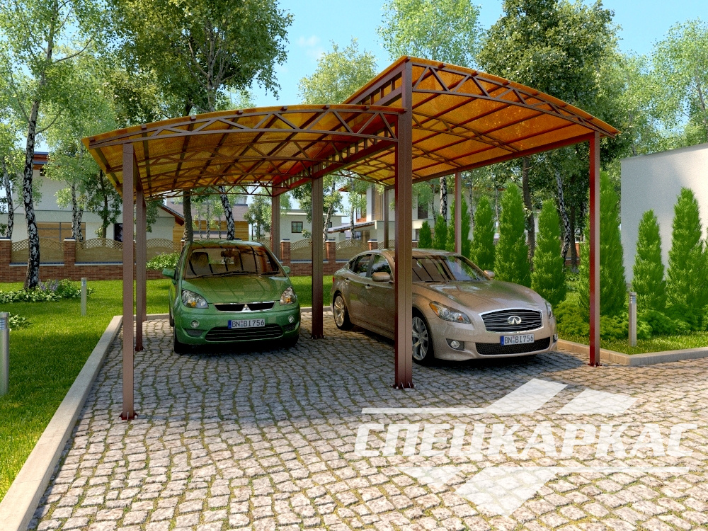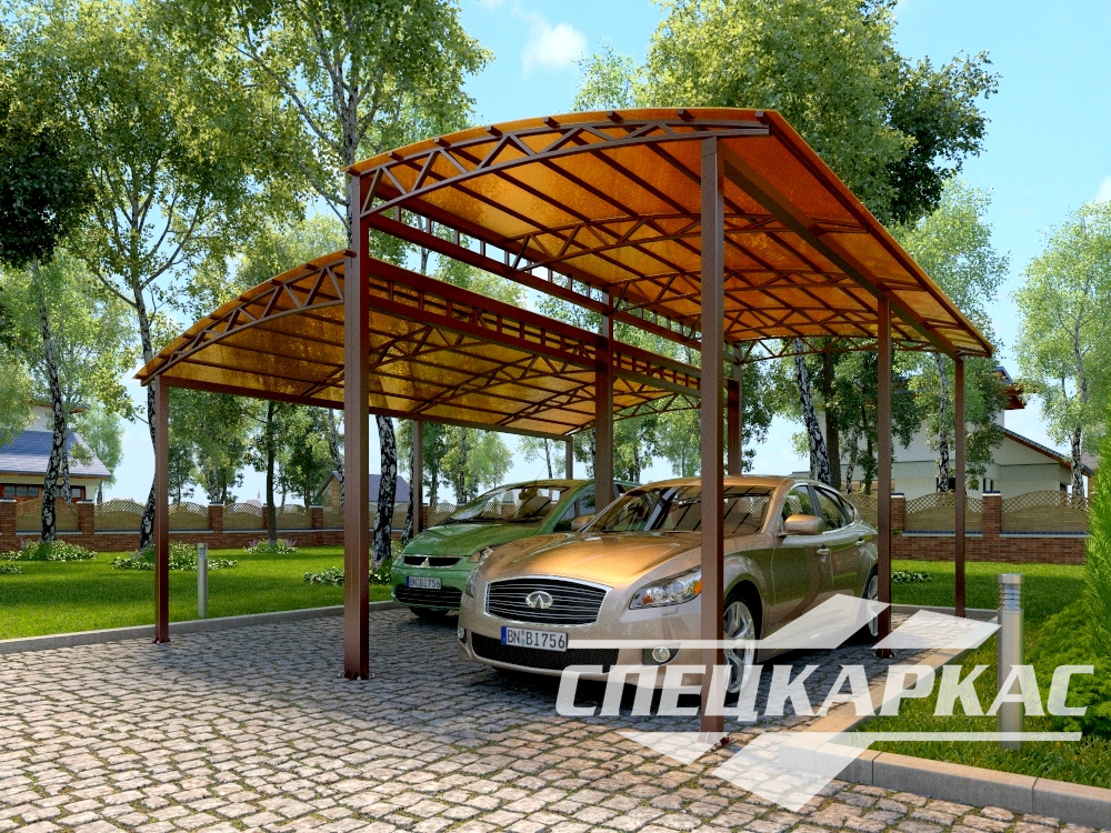 Подобной конструкции не страшны порывы ветра (даже ураганного), она проста в уходе и не требует усилий по уборке. Преимущества покрытия из поликарбоната трудно переоценить: кровля устойчива к износу, выдерживает нагрузки до 120кг-м2, жаро- и морозоустойчива. Покрытие из поликарбоната надежно защищает автомобиль от воздействия ультрафиолета и не позволяет краске выгорать от солнечных лучей.